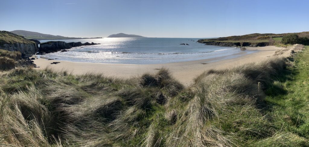 The image is a panoramic view of Silver Strand or Trá na Pluaise (Photo Ed.)